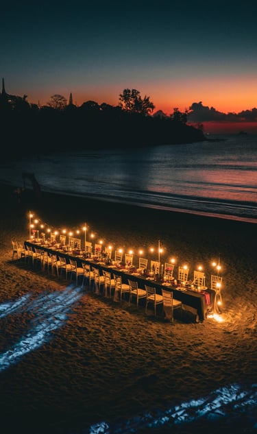 Private beach. Gourmet platter. Zero noise. Just the two of you — wrapped in golden light.